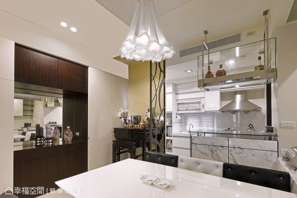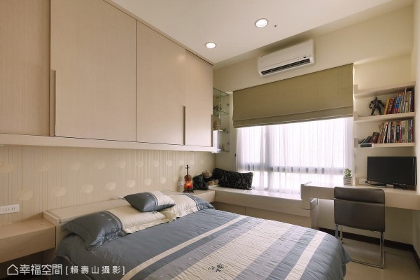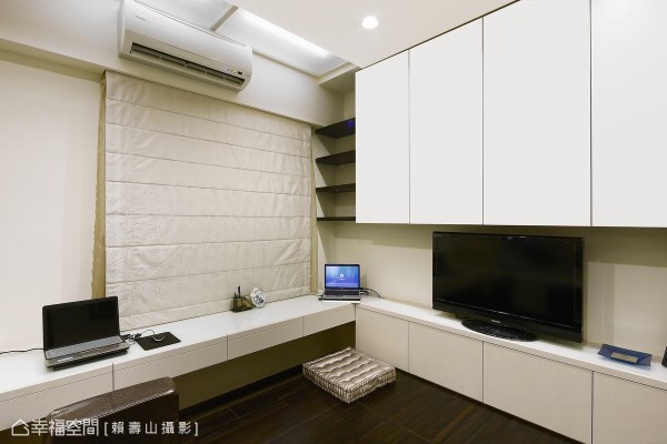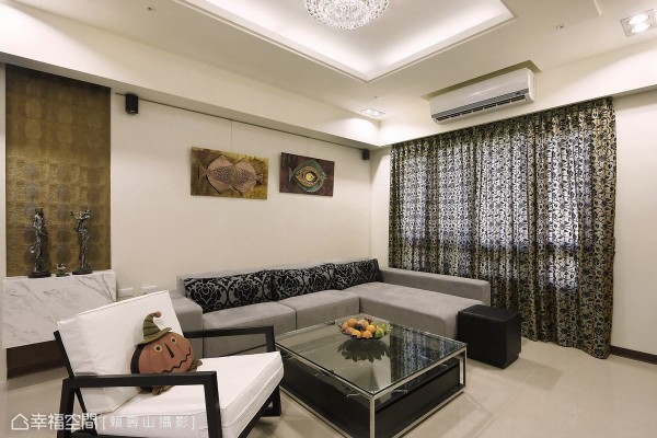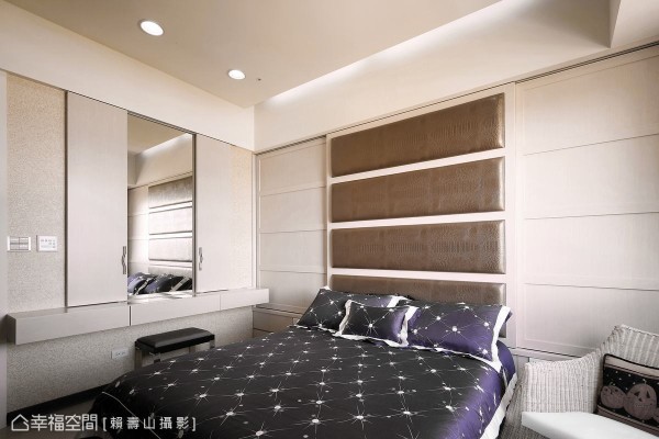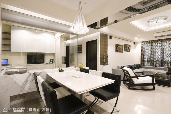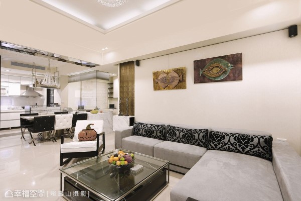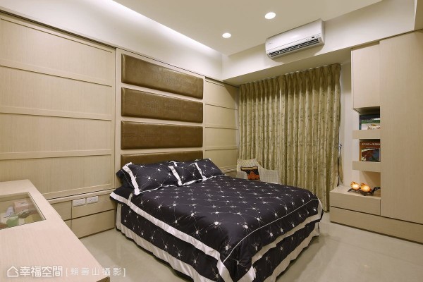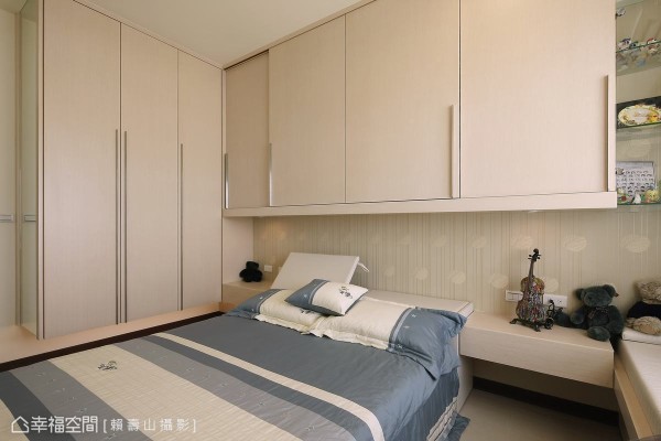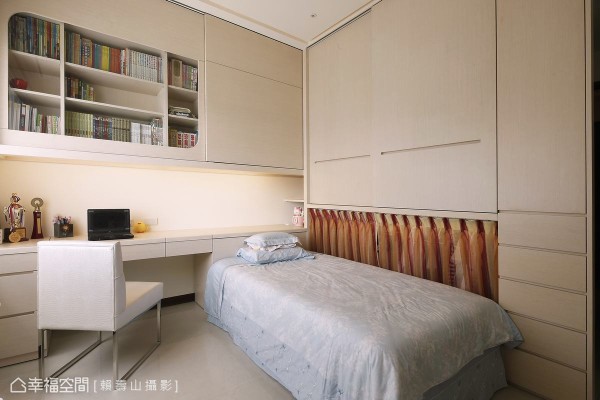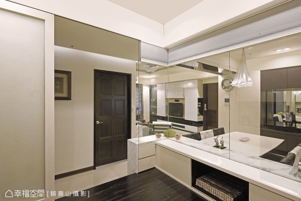 “美”的概念,来自主观意识的认知,有人看不懂毕卡索的立体画法、也有人无法认同马谛斯的野兽派画风,但他们具有的指标意义及历史地位却也无法撼动,不同的文化薰陶与美感训练,三重的屋主因其对艺术的喜爱,对美感有自己的坚持,由其在色彩的选择上希望以黑白两色为基调,铺陈出空间的时尚大器。 将间接光源设计在客厅渐层内缩的天花里,光线在3米2的挑高空间折射出更聚焦的美感,刻意压低的浅灰沙发更彰显客厅的挑空明亮,简单的从天花板设计、沙发的选择、白色烤漆对称电视柜体的设计,完全符合屋主要求的“挑高、明亮”,从一入门开始,设计师就开门见山展演美感与空间加大的专业手法。 压低的横梁是设计师铺排“挑高、明亮”的一大难题,也是设计师展现过人空间魔术的最佳发挥场域。利用不锈钢的镜面反射原理,铺饰在餐厅与客厅间的横梁上,加高空间挑高减少压迫感,并利用横梁下方的畸零空间设计橡木染白木作柜体,搭配黑檀木设计的神明桌与备餐台,融合出对比黑白的柔和表情,到顶的柜体设计丰富了餐厨区的收纳容量。备餐台中间的镜面反射出餐厅另一方以清玻璃分隔出来的客房空间,设计师利用镜面反射与穿透玻璃,将原先独立出来的餐厅空间加倍放大,并使用可双面使用的银狐大理石台面,将餐厅后方的客房空间拉进开放空间领域,让黑白质感延续整个公共空间。 设计师将黑的神秘大器留在公共领域,保留白的轻盈语气在每个成员的私人领域。公共空间里,设计师只在客厅电视柜与餐厅的备餐柜区块,小小展露一手隐藏收纳技巧,踏入以橡木染白木作为主体设计的主卧室空间,简单大方是对这个空间的第一印象,除了窗户旁的造型柜体可瞥见书本的摆设外,几乎见不到凌乱的生活什物,推开床头后的造型壁板,赫见大片的衣柜藏身其中,下方还有抽屉式斗柜,设计师表示:“若照传统的设计手法,大型的衣柜会占去太多空间,因此利用室内横梁下的空间,设计出一整面墙的衣柜。”还依照屋主的使用习惯,设计师打造兼具衣柜及展示柜功能的柜体,下方加长的台面成为主人在窗边小憩时可使用的边桌。 延续主卧房的浅白木作,女孩房依旧是橡木染白的空间铺陈,一体成型的柜体、书桌与床台,让空间有一气呵成的连贯感,无把手的设计让柜体看似装饰壁板,推开门板及抽屉,超大的收纳容量让小女孩的购物欲也有充足的收纳空间。做到顶的衣柜设计有280公分的高度,设计师贴心设计油压式升降杆方便小女生拿取衣物,下方设计开放式衣架空间,让女生五颜六色的服装色彩替浅白的屋子妆点出更多缤纷表情。 稍别于女生的跃动活泼,男孩房的设计多了点沉稳成熟,考量衡量问题,设计师在床头设计吊柜,放置男孩的丰富藏书,与之连贯的衣柜采悬空设计,延伸的线条更显得空间轻盈。床头后方亦有掀版式收纳空间,将板子掀起后,坐在床上阅读也很舒服。临窗的休憩椅是暂时舒缓念书疲劳的休憩区,若觉得书桌的桌面不敷使用,拉开可加长的桌面,再多的书都不怕没有位子放。 在意想不到的地方隐藏收纳空间,一向是玉山设计林玉山设计师的招牌手法,巧妙将艺术的美感融入,美丽与实用,谁说不能并存?