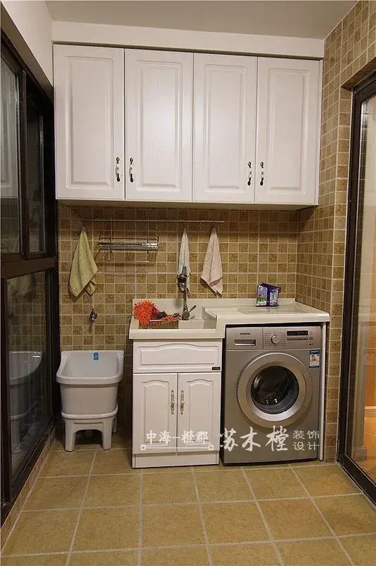 6.生活阳台:有没有注意到排列,拖把池放在最靠窗的位置,拖把池洗衣机位置放置的合理(买洗衣柜的时候注意最好选择洗衣机位置朝里面,防止阳光照射减短使用寿命)当然也可以放一些舒适的吊椅,绿植等可以享受一下静谧的午后阳光。