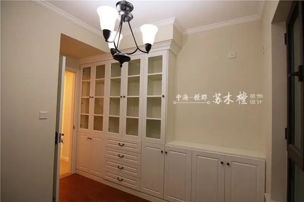 大概是100平的简美风格,业主基本要求是不失美观可实用和储藏功能多一些。几张完工照中的98%的柜子都是由苏木樘打造,环保型的免漆板按投影面积计算(不计中间的格子),柜门和柜子里的五金都含在内。