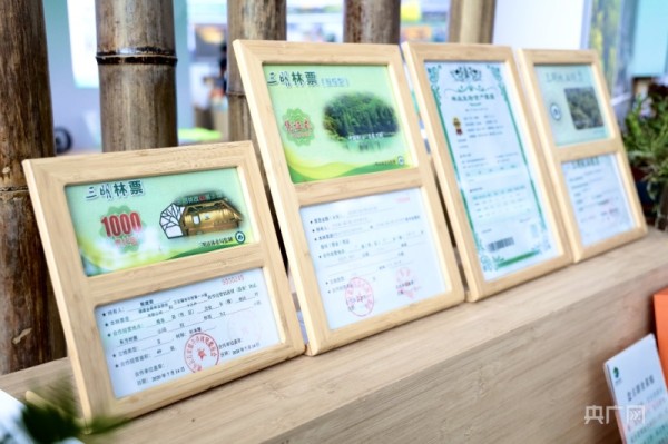 全国首张林票、碳票(央广网记者 龚雯 摄)