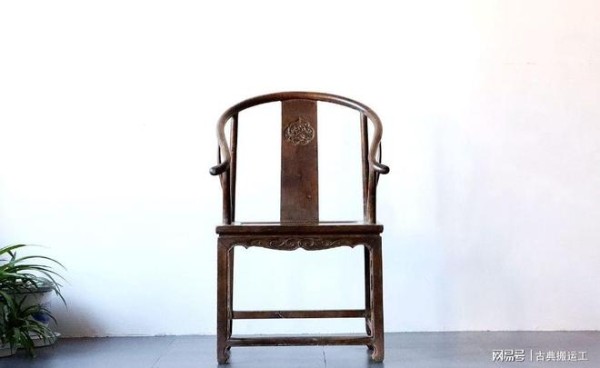 【清代早期官帽椅】此椅整器浑厚稳重,搭脑掏出枕形式,两端烟袋锅扣卯榫,圆润饱满,光素无饰的背板,宽大舒适,弯曲有致,浑素面沿更显庄重,下设券口牙板,整器无任何修饰,更能体现工匠的手艺精湛。尺寸:长59,宽47,座面高53,高113厘米。