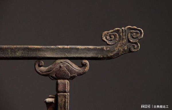 【明代黑大漆衣架】此衣架通体髹黑大漆批麻灰,古朴典雅,两端雕云纹饰,线条优美流畅,细腻饱满,抱古墩敦厚朴实,整器格角打洼式设计,做工讲究精致,角牙一气呵成,中间五块起鼓开光纹,保存完整,实属佳器。尺寸:长168,高160厘米。