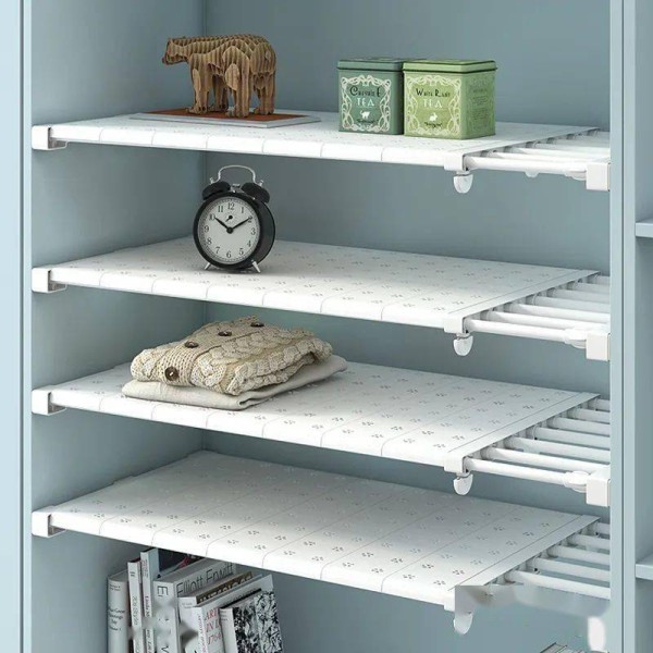在想办法的时候,我发现了衣橱分隔架这个神器:它相当于给比较大的空间里增加了一层搁板,让空间的分布更加均匀。