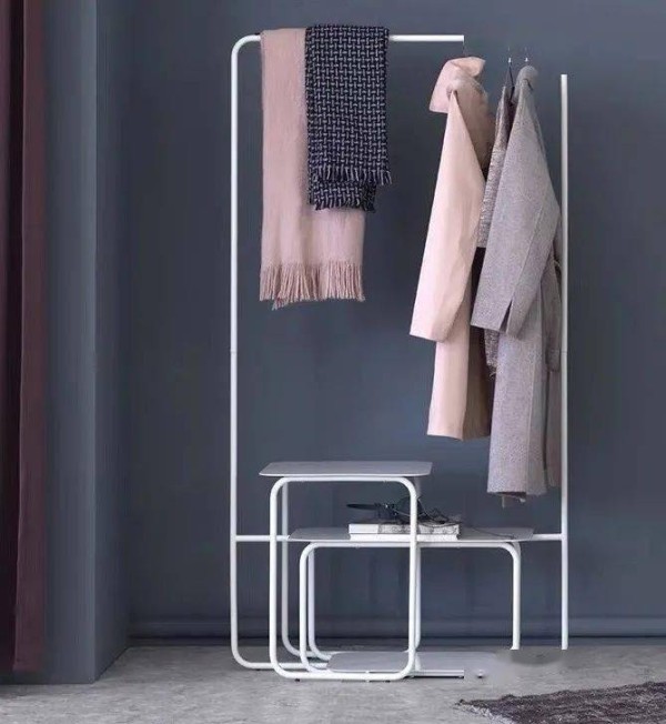 原先我有个门后面的挂钩来收纳这些衣服,搬家后,我买了一个宜家的带轮子龙门架,把“隔夜衣”都挂起来,一下清爽很多。造作这个也不错,样子也美观。