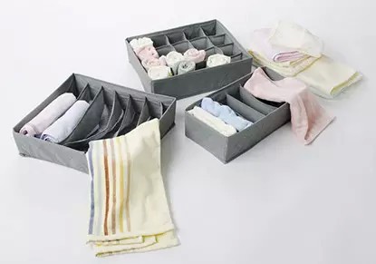 4.毛衣卷好放进抽屉里。
