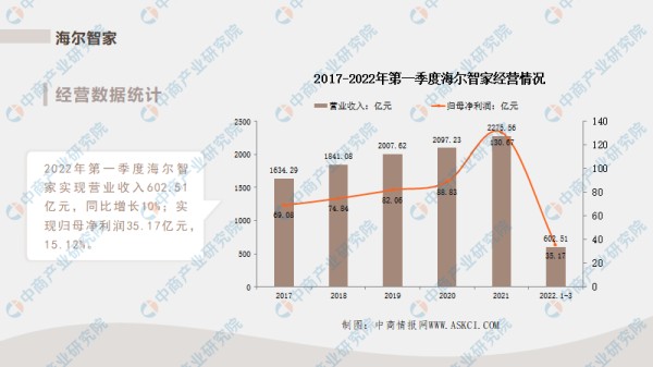 2022年第一季度海尔智家实现营业收入602.51亿元,同比增长10%;实现归母净利润35.17亿元,同比增长15.12%。