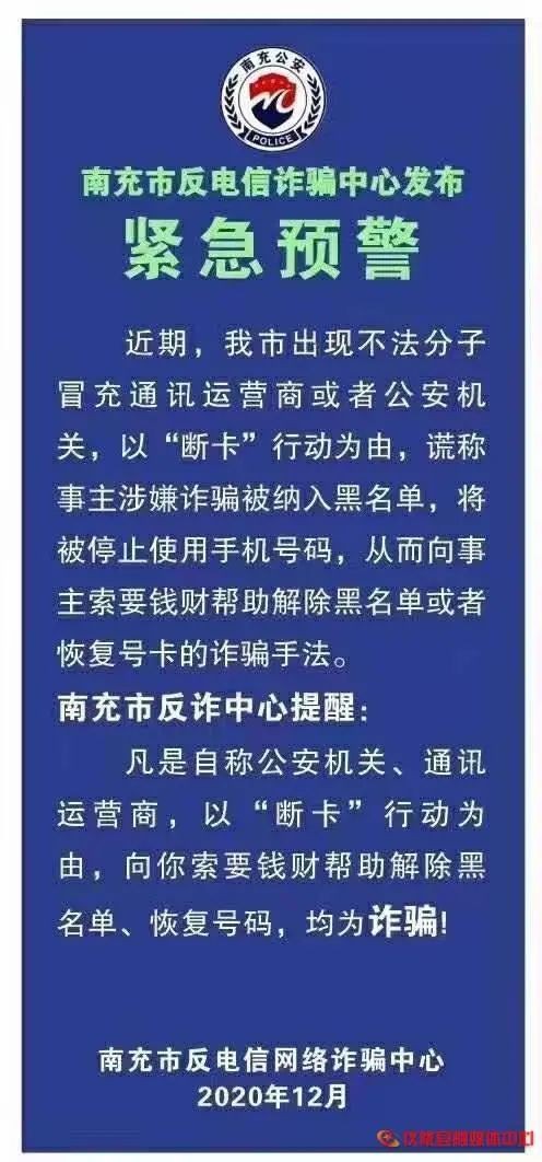南充市反诈中心紧急预警!“断卡”= 诈骗!