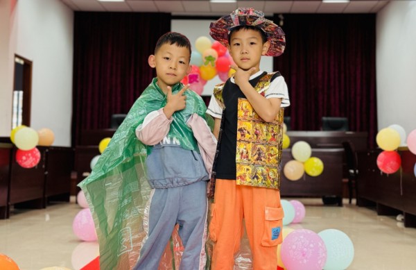 活动中,家长和小朋友配合协作,利用旧衣服、环保袋、废旧纸张等原材料,结合奇思妙想和巧手打造,把生活中不起眼废旧物品变成了一件件童趣盎然的创意服装。随着音乐的节奏,小朋友迈着自信的步伐在舞台上展示着自己的作品,使服装具有极强的视觉感和表现力。他们凭借自己的创意使环保与时尚共舞,展现了废旧物品的生命力。同时,通过垃圾分类海报的展示,让小朋友认识到废旧材料循环再利用的意义,也在他们的心灵上种下一颗环保的种子。