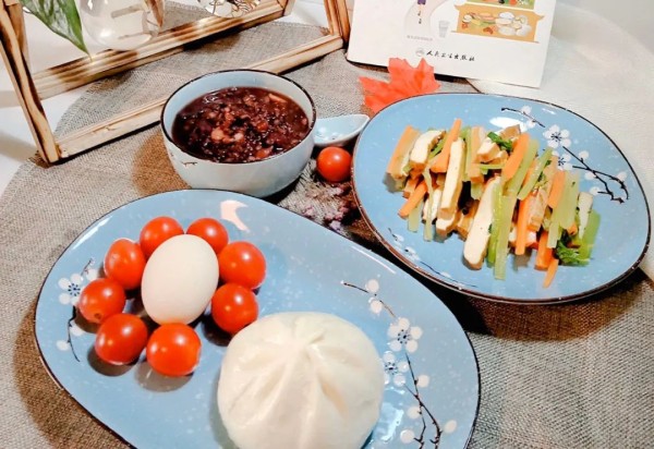总结一下,早上可以来一杯牛奶或者酸奶,配上面包,如果吃馒头的话,对青少年来说吃肉包更好,加一点水果,圣女果、蓝莓、苹果等,还可以以搭配一点小坚果。