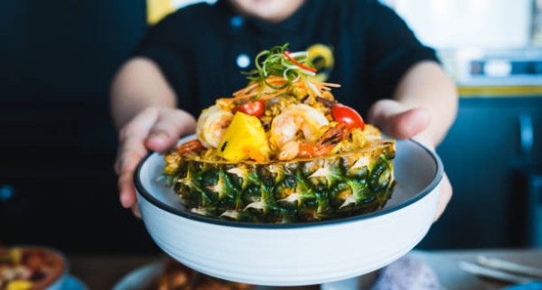 少量加入蔬果至你菜餚當中。鳳梨排骨、鳳梨蝦球、香蕉煎餅等。