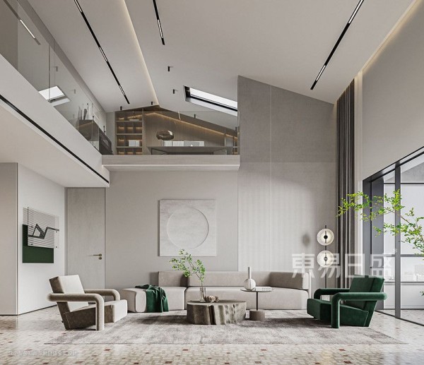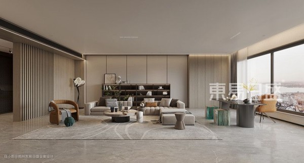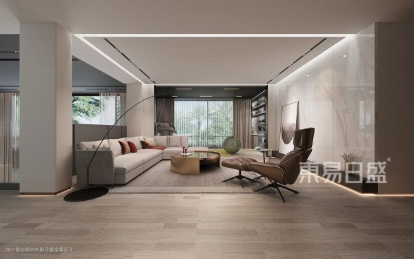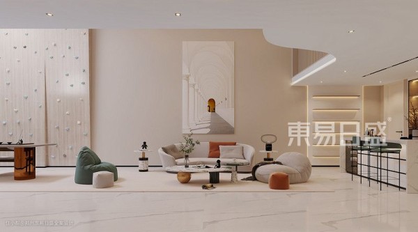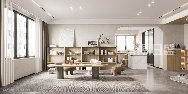 90后的客厅不再以电视背景墙当主角,将书房,办公室,瑜伽室,亲子空间最大化的利用,融入客厅空间中,增加家人之间的互动和交流。