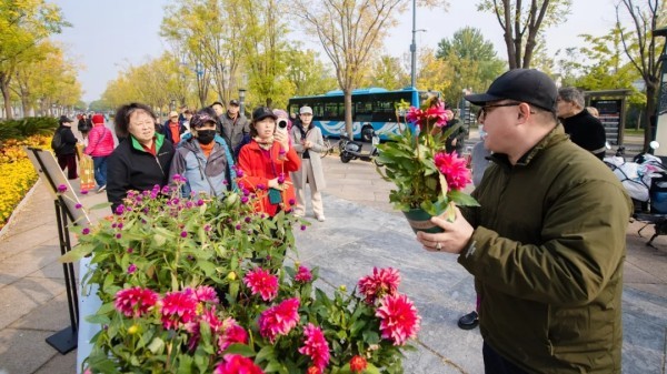 近日,东城区国庆花卉分享活动在南中轴御道广场举行。东城区园林绿化局将中国人民抗日战争暨世界反法西斯战争胜利80周年纪念活动及国庆期间摆放在南北中轴线上的花卉,免费发放给广大市民,共享芬芳。