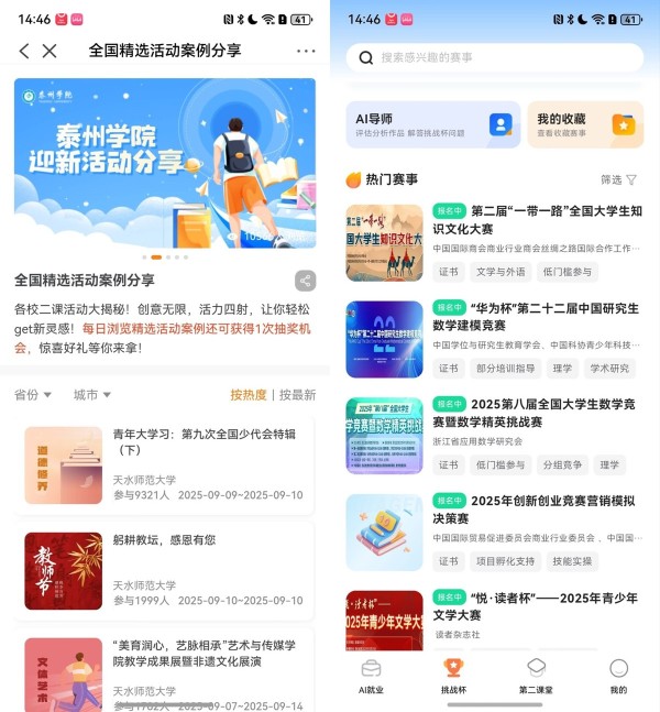 我升级到鸿蒙5版本后,这App用起来那叫一个得心应手,深度适配得简直完美,一点压力都没有。它可是高校第二堂课平台,里面有各种各样的校园活动、全国活动,还有竞赛。我们可以在线参加这些活动,然后获得第二课堂学分。学分这东西,那可是多多益善啊!多参加活动,不仅能拿到学分,还能积累宝贵的经验,让自己快速成长。而且,在活动中还能结识到好多志同道合的朋友,说不定还能收获一段深厚的大学友谊呢!
