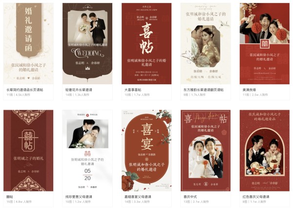 婚礼纪提供了多种风格的请帖模板,包括清新、中国风、花语、时尚等多种主题。你可以根据自己的喜好和婚礼风格选择合适的模板。