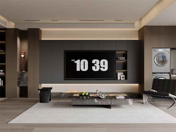 现代家装:简约线条与沉稳质感的空间共鸣 通过深棕、黑色与金属、大理石等材质的搭配,在各空间中融合简约线条与精致细节。