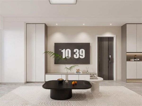 电视背景墙建议摒弃繁复的造型,用简单墙漆装饰或者使用大理石、木材等装饰,同时可以搭配悬空电视柜,释放客厅空间的活动面积,彰显简约大气。