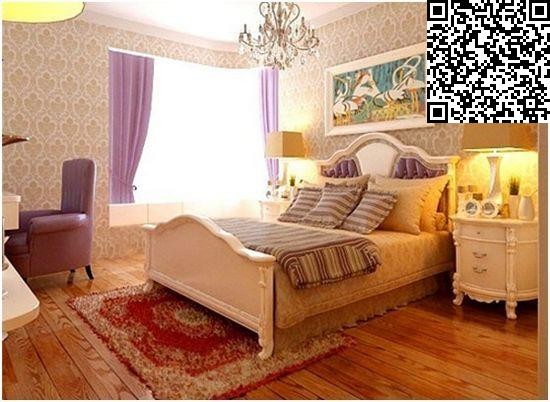 在这里卧室在色彩的选择上面是采用的是紫色。紫色本有高贵与浪漫之意,而且在色彩浓度的选择上面是选择偏清淡,有一股淡淡的情愫在里面,而且为了保证卧室装修后效果的舒适度,这样的色彩也不至于刺眼。