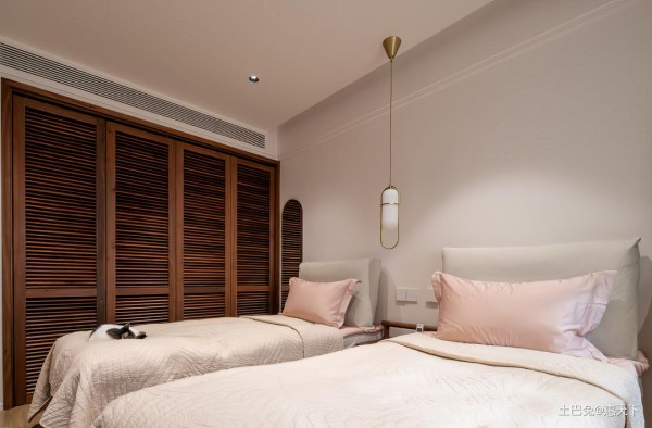 卧室一定要放双人床嘛?答案可是不一定的哦~因为业主平时是一个人住,女儿偶尔过来居住,双人床的设计两人同时居住互不影响~