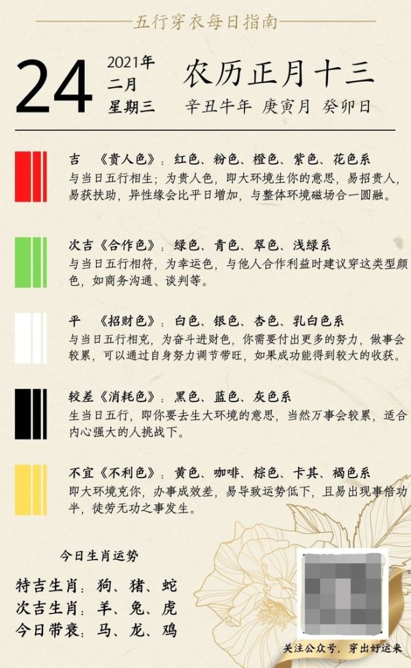 五行穿衣指南 | 2021年2月24日穿出好运来五行能量穿衣旺运法
