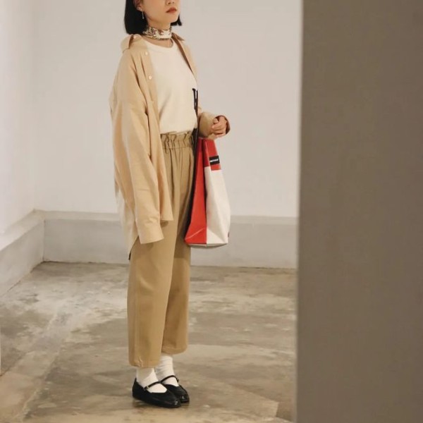 想要轻松随意的搭配,就用同色系的宽衬衫搭配,衬衫开扣露出内搭就能轻松可爱好看。