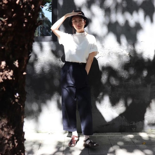九分裤的百搭度绝对不容忽视,就算是最简单的长袖t恤也能轻易组合出可爱气质的穿着,配上具有女孩气质的鞋款就十分好看。