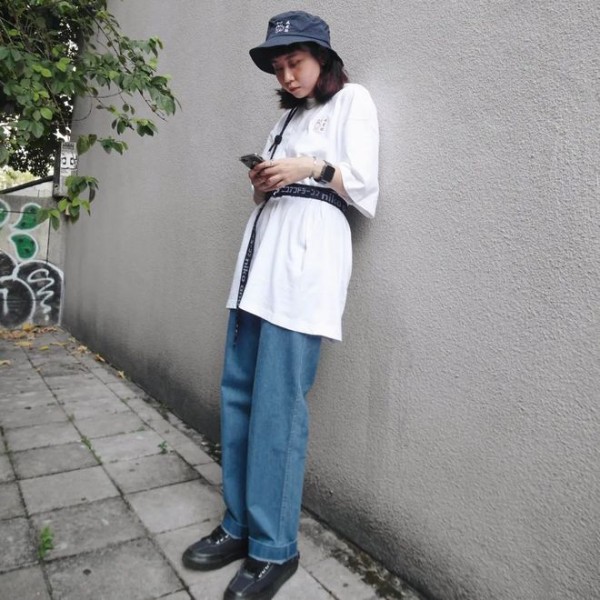 春天穿上它可以选择素色Tee外层再套件宽松衬衫,内里衣服可以微微扎进去,露出裤耳上的腰带点缀整体搭配风格唷!