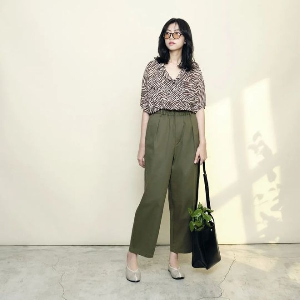 第一款要介绍的就是俗称「花苞九分裤」的不败裤款,之所以称为不败就是它的腰部的「打褶松紧设计」,有超赞的收腰效果,再穿上就显露纤细的腰部线条,再来穿着起来不会太垂坠维持住裤型轮廓,让你奔走各种场合都不会显得太随便,且版型不会太贴身能够藏住女生最在意的臀部与大腿肉。