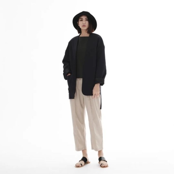 # 西装料压褶九分裤:逐渐变细的下身超俐落的化身