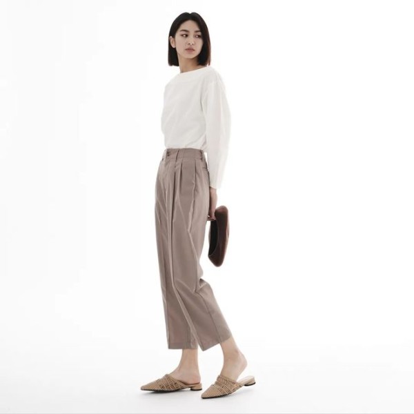 再来就是最近各个快时尚品牌出现的九分裤,看样子就知道穿上它绝对能突显你的完美比例,因为它上宽下窄的设计能修饰各种腿型,且微宽却不过宽的版型能随心所欲搭配在各款服饰上。