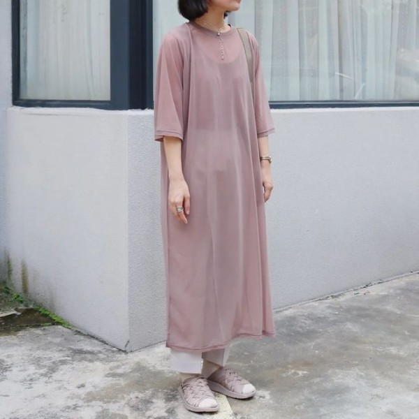 长版洋装搭配西装九分裤这样落差的视觉比,配上垂坠感的面料就会散发出一种知性气质的氛围,瞬间成为知性女孩。