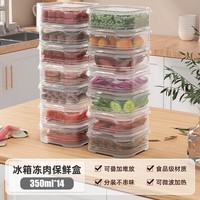 稻草熊冰箱保鲜盒可微波炉加热带盖储物盒冻肉蔬菜水果食品级收纳盒 冰箱保鲜盒350ml【14个装】