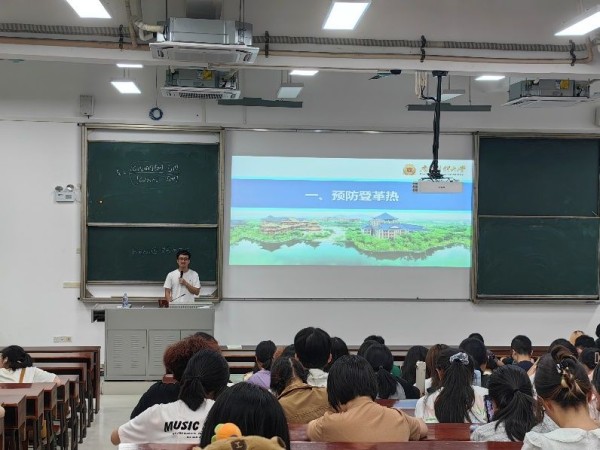 在两校区开展“预防登革热”主题班会、组织学生骨干参加主题为“登革热的流行与防控”的专家讲坛、学院领导和老师走访学生宿舍等多种途径开展展卫生健康宣传教育活动,深入开展预防登革热和卫生健康知识宣传教育,引导学生牢固树立健康意识,提高自我预防能力。督促学生做好宿舍卫生死角清洁工作,对容易积水的场所进行检查,对防蚊灭蚊工作进行指导,有效消除蚊虫滋生环境,预防登革热传播。