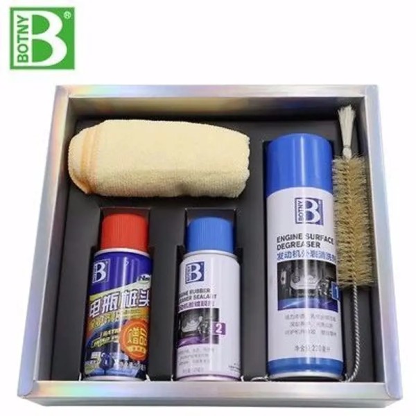 3、发动舱镀膜养护套装。这个主要是对清洗后的发动机舱线路进行保护,延缓老化、龟裂等,比较适合私家车自己养护。通常二手车贩子会用表板蜡来简单的喷喷,如果想简单直接也可以选择表板蜡。