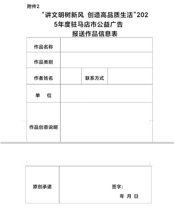 2. “讲文明树新风 创造高品质生活”2025年度驻马店市公益广告报送作品信息表
