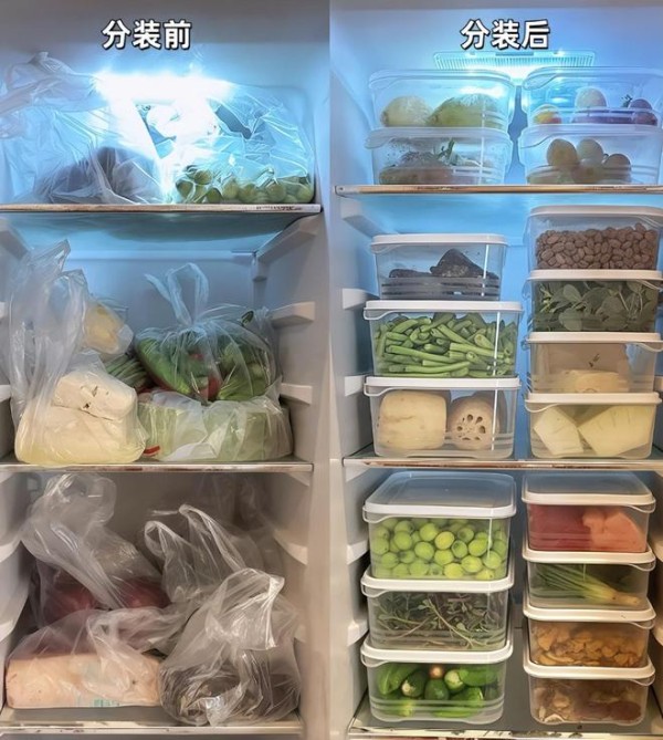 很多人把食物,全都往冰箱里面一塞,这么做,只会让冰箱变得乱糟糟的,根本无法起到一个透明收纳的效果。