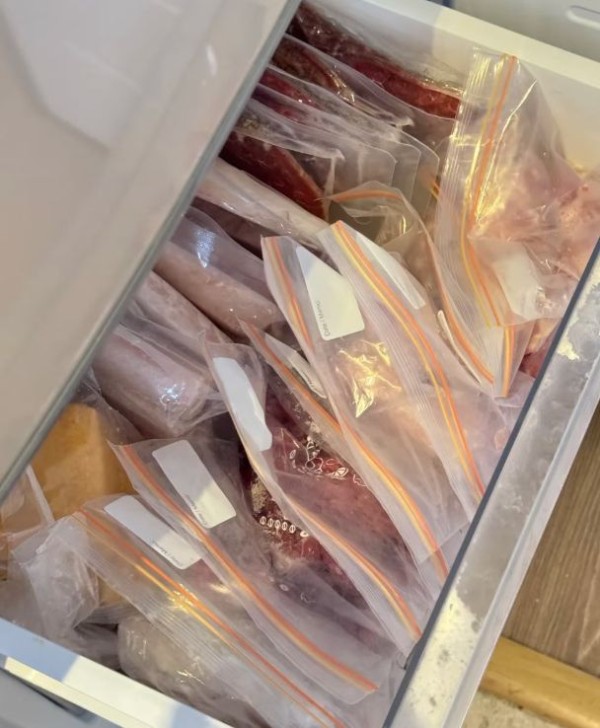 还有一个食材,可以用袋子分装,分装好了把空气排出去,适合压缩储存,保鲜效果也更好。