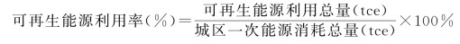 城区可再生能源利用总量是指城区内年度利用的各种可再生能源(如太阳能生活热水、太阳能光伏发电、地源热泵、风力发电等)折算成一次能源消耗量的总和,单位是吨标煤。计算可再生能源利用率时,需分类型列出可再生能源的利用量,然后折算成一次能源消耗。
