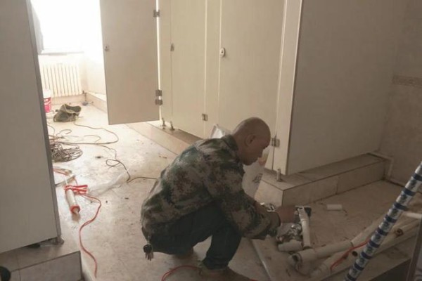 由于我校教学楼室内卫生间管线老化、水压不足,现在对一至五楼的管线改造,室内卫生间还有蹲便漏水严重,也进行更换和改造,月末基本全部完工。