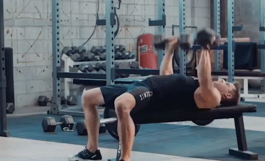 卧推可以锻炼手臂跟胸肌,手握哑铃,仰卧状态让哑铃位于胸部上方,从曲肘状态推起哑铃,直至直臂状态,动作坚持4-6组,每组12次。