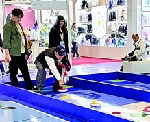 观众在“进博体育公园”体验掷冰壶。光明日报记者 蔺紫鸥摄/光明图片