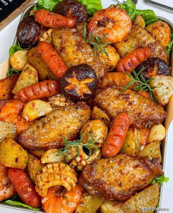 步骤3、把烧烤酱汁均匀刷在食材.上,放预热好的烤箱上下火180度烤30分钟即可。