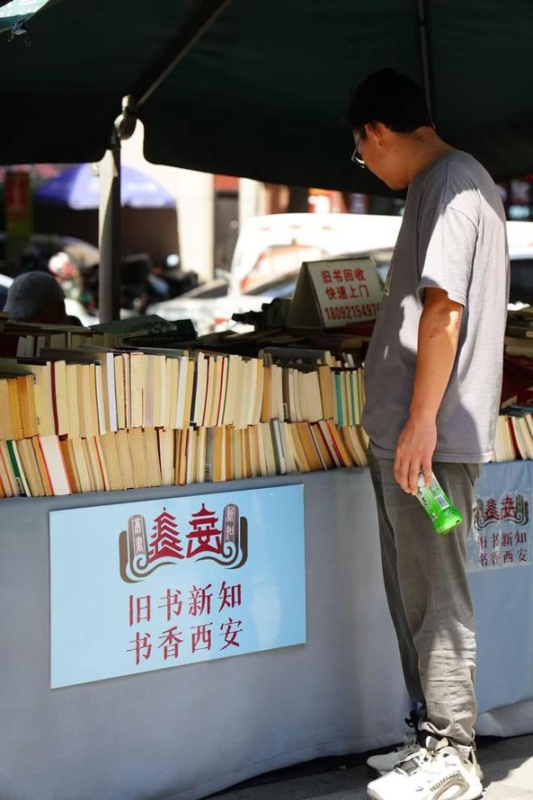 前不久,同样位于兴善寺西街的书香集市焕新登场。结合街区文化主题风格,主办方对书香集市的硬件设施完成了改造提升,新开设“古旧图书销售专区”“捐赠、换书专区”“古籍典藏展示专区”等,满足不同读者群体多样化淘书、换书需求。统一设计的遮阳伞、桌布和书挡,搭配醒目的“旧书新知 书香西安”标识,让活动氛围更为浓厚,擦亮了首批市级旧书销售示范门店(摊)的品牌。