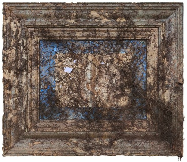 同时,郁涛希望通过加上外框,让作品更像一幅画。他选择了油画常用的西式画框,虽然画框在美术史中有丰富意义,但他只是想将实物与“基底”整合成一个整体,增强作品的完整性,让它看起来更像一幅画。