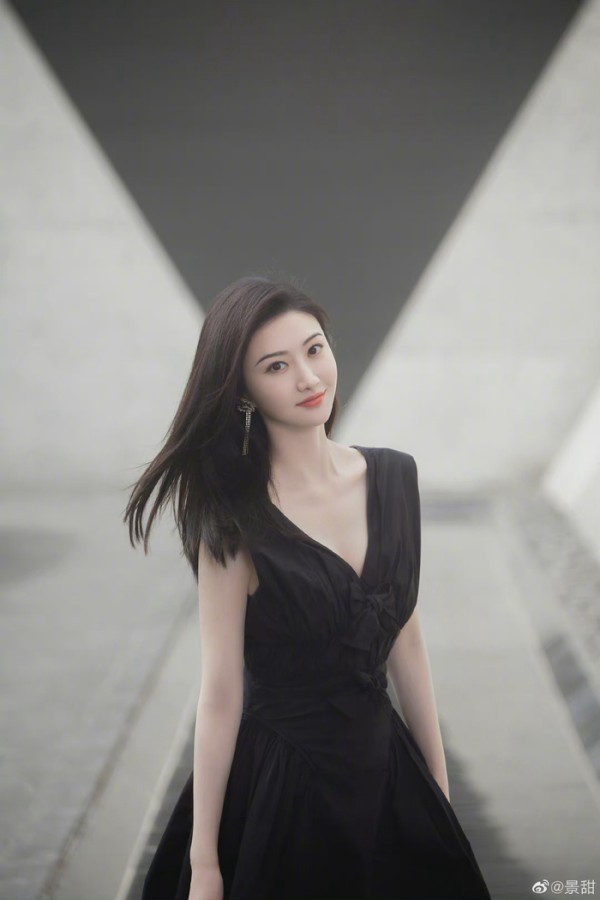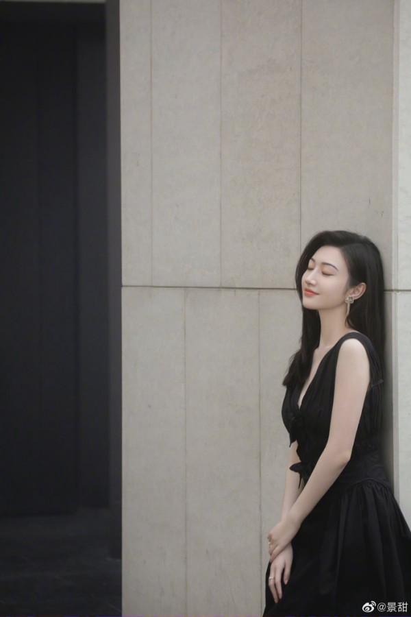 1 / 9 景甜微博更新:珍爱生活中的每个瞬间!黑色深V连衣裙搭配马丁靴,性感酷飒的姐姐@景甜