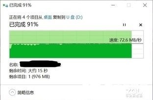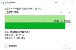 为了进一步验证这款产品的性能,在实际应用测试中,我们同样使用了大小为10GB左右的文件包来进行写入测试,以此来展现这款产品的真实性能。