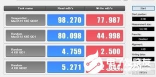 连续最大读取速度维持在98MB/s左右,最大写入速度78MB/s左右,与前两项测试成绩表现同样优秀,进一步证实了这款产品的可靠性。