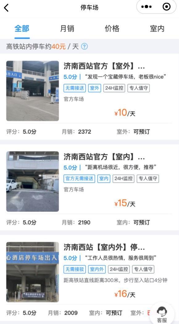 济南西站官方停车场:40元/天 × 3天 = 120元《“UU停车”》预约停车:20元/天 × 3天 = 60元
