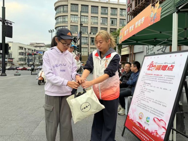 区环境有限公司工作人员周琦介绍,除了送货上门和上门回收外,为方便市民参与,公司在区城投集团、区综合行政执法局等单位设置了6个固定捐赠点,同时在人民广场、共富广场等点位设置了5个流动捐赠点并定时开放