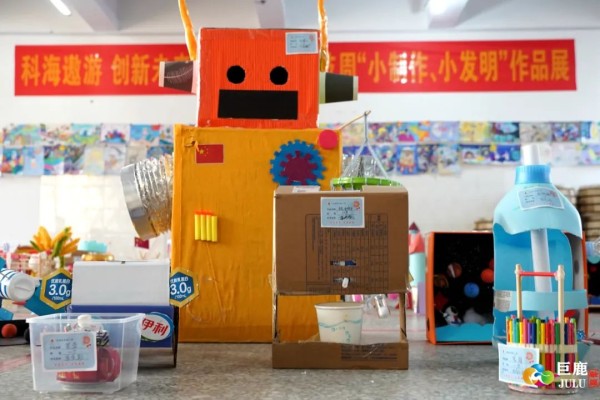 充满童趣的梦幻小屋、纸箱旋转摩天轮、恢弘大气的中国龙、垃圾回收机器人……日前,巨鹿县育英小学举办了一场以“科海遨游 创新未来”为主题的科技文化周活动,评选出了近千件科技小制作、小发明作品,这些作品均由废旧材料制作而成,件件作品设计新颖、创意独特。