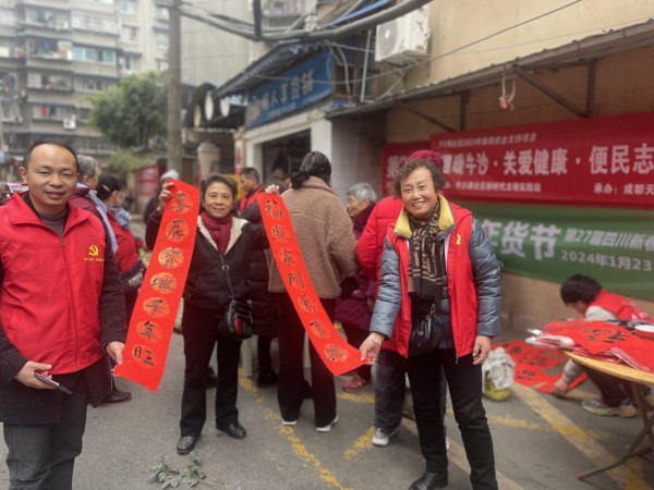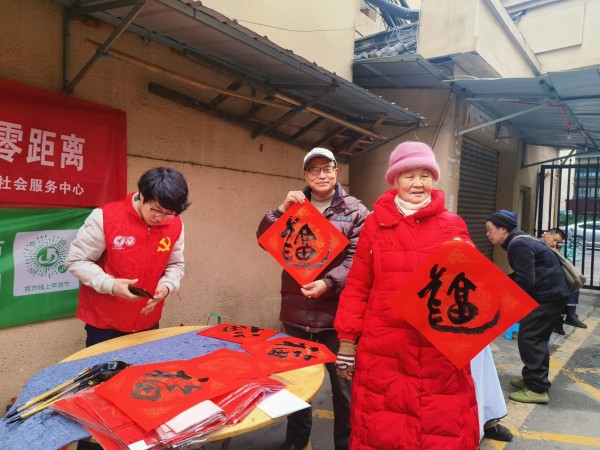 另一边,书法老师们铺开红卷,蘸好笔墨,笔锋婉转……一幅幅饱含着浓浓年味、寓意美好的春联,一个个苍劲有力的大红“福”字,一张张遒劲有力、风格迥异的书法,让活动现场暖意融融。居民们挑选着自己喜欢的春联,个个喜上眉梢。